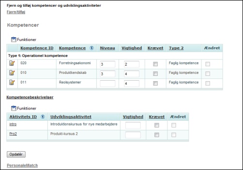 Krævet: Her markeres, hvis den pågældende kompetence på det angivne niveau er krævet. En sådan markering anvendes ved MedarbejderMatch, hvor det har den betydning, at medarbejdere, der ikke opfylder kravene, frasorteres.