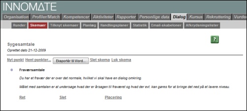 | • | Luk skema Det er nødvendigt at lukke et skema før det kan anvendes. Det er således det sidste man gør inden man skal benytte skemaet, da der, når skemaet er lukket, ikke længere kan tilføjes eller redigeres i det. |
