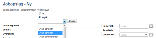 Kopiér: Indholdet fra andet jobopslag kopieres ind i et nyt. Der vælges fra rullemenu.