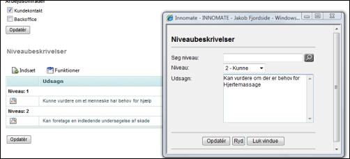 Efter klik på Opdatér, åbnes mulighed for at indsætte Niveaubeskrivelser.