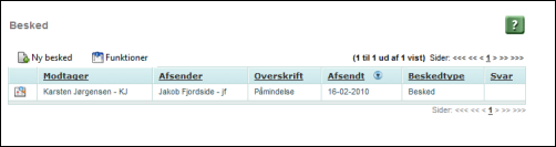 Svar: Der vises svar (åbent for beskedtypen 'Besked' og Ja/Nej for beskedtypen 'Forespørgsel'.