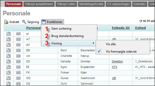 | 2. | Klikkes der på Brug standardsortering vender du tilbage til den systemdefinerede sortering. |