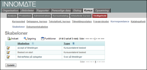 Ved kommunikation med kursister m.fl. er det muligt at anvende skabeloner i to former: